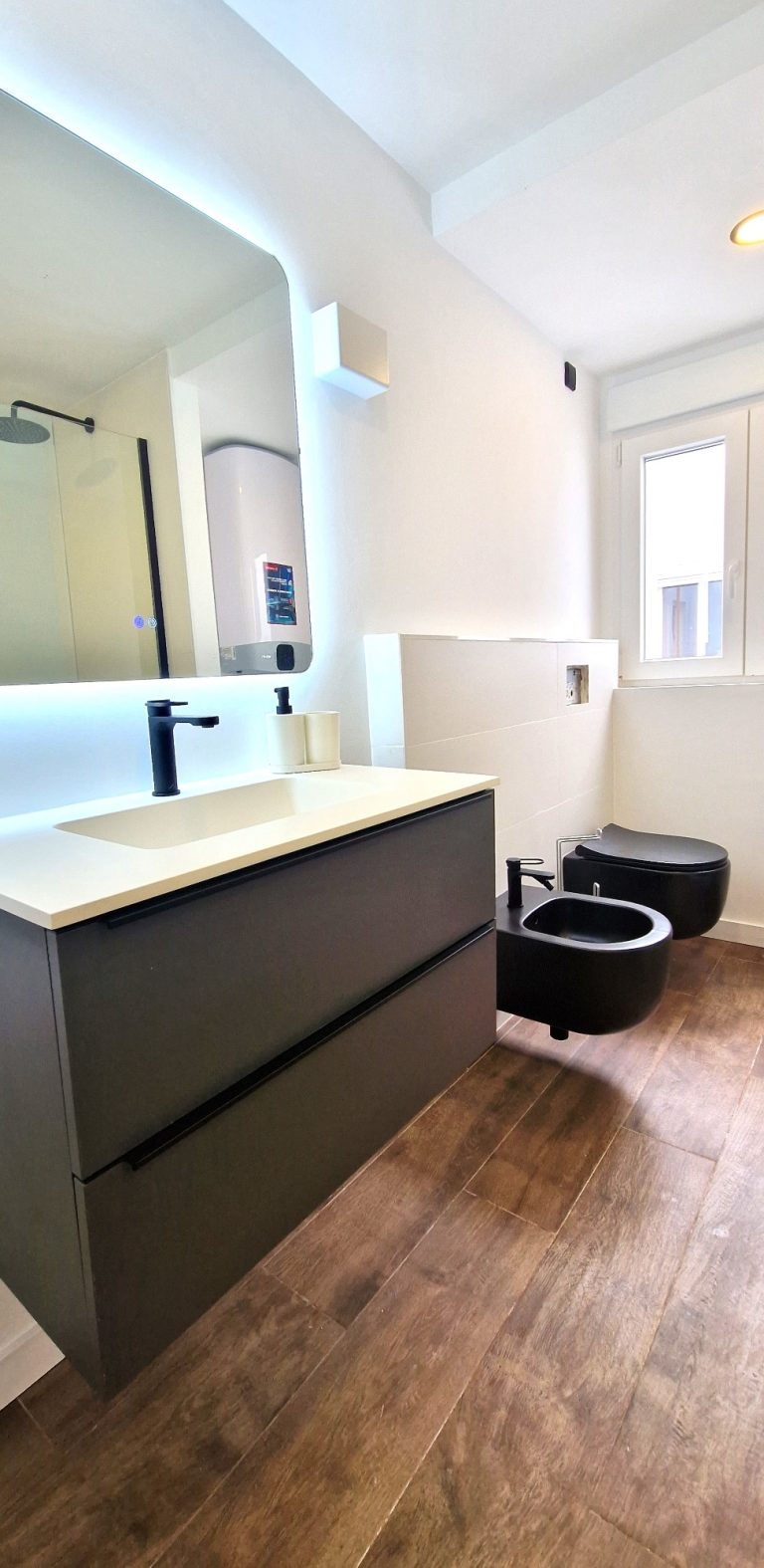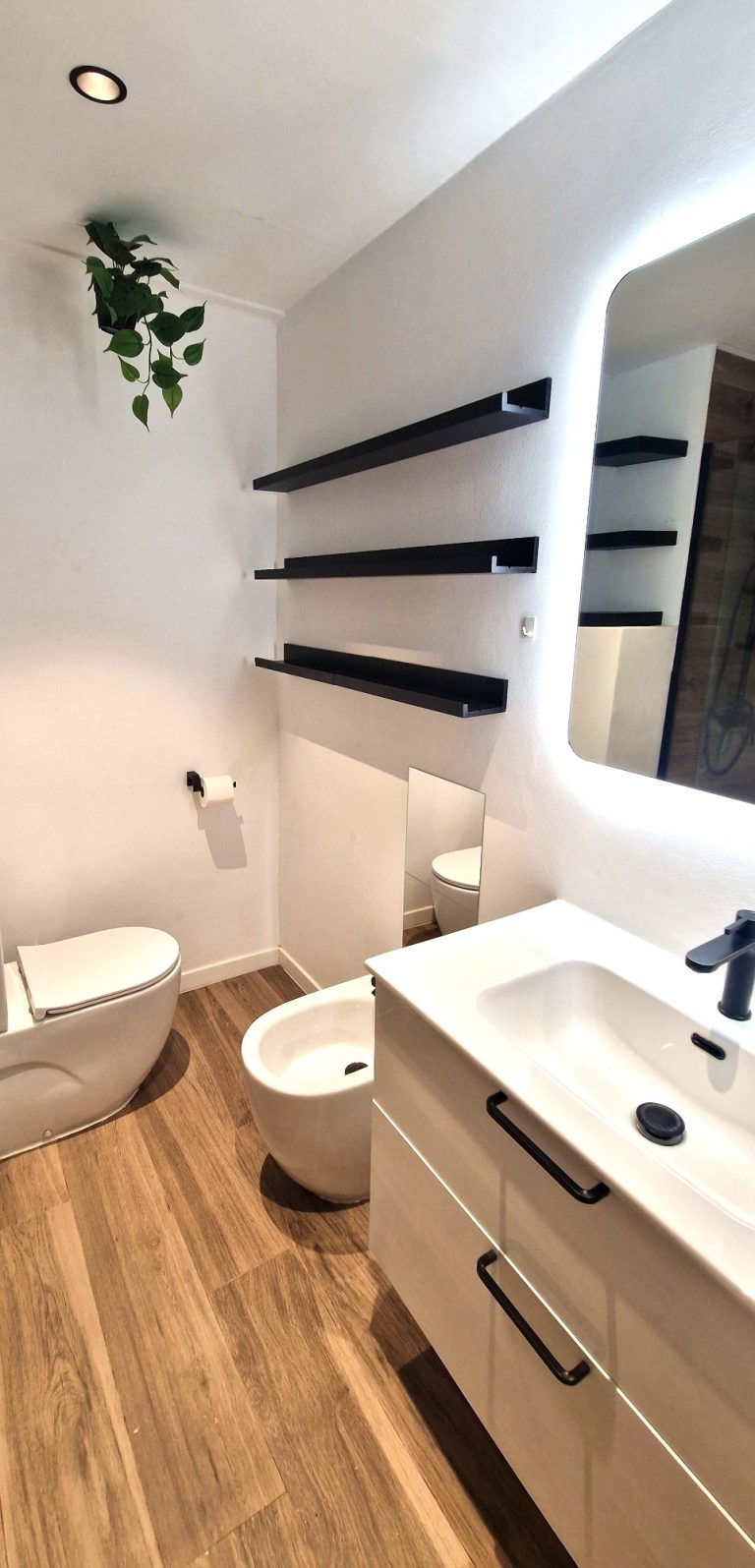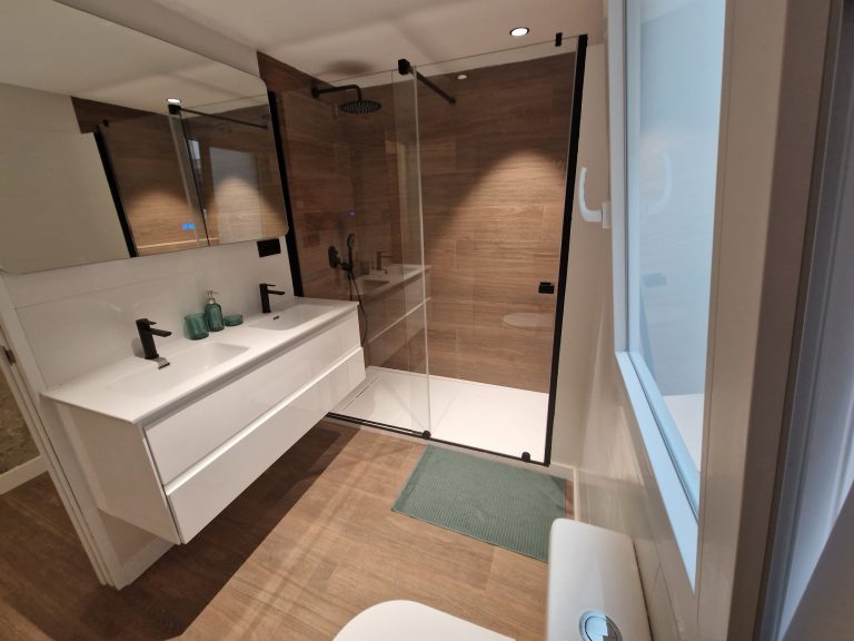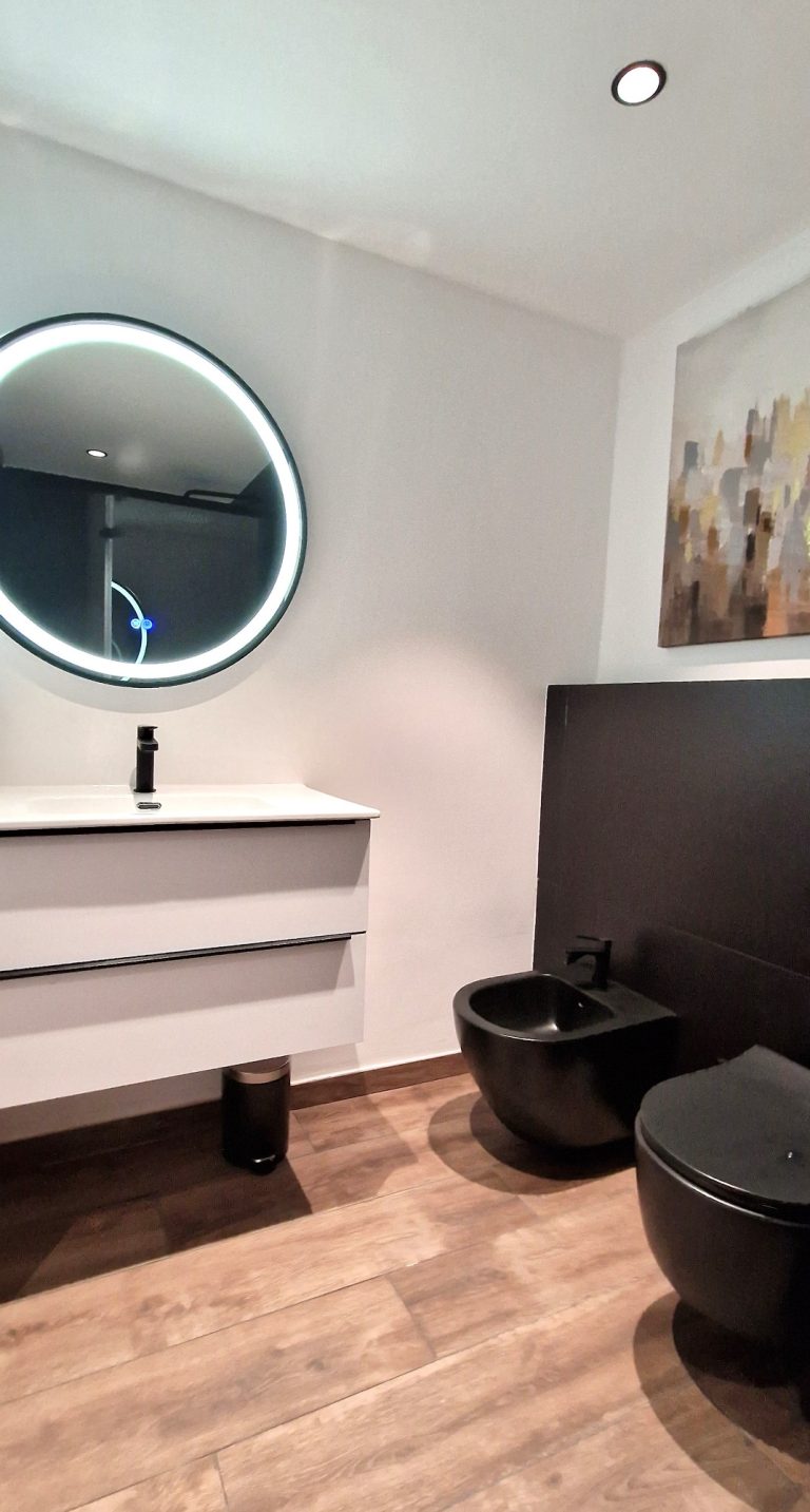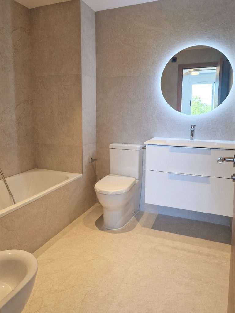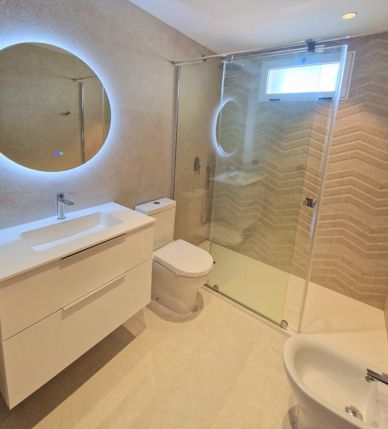 2 cuartos de baño, uno de ellos con ducha, bidé y espejo retroiluminado.
