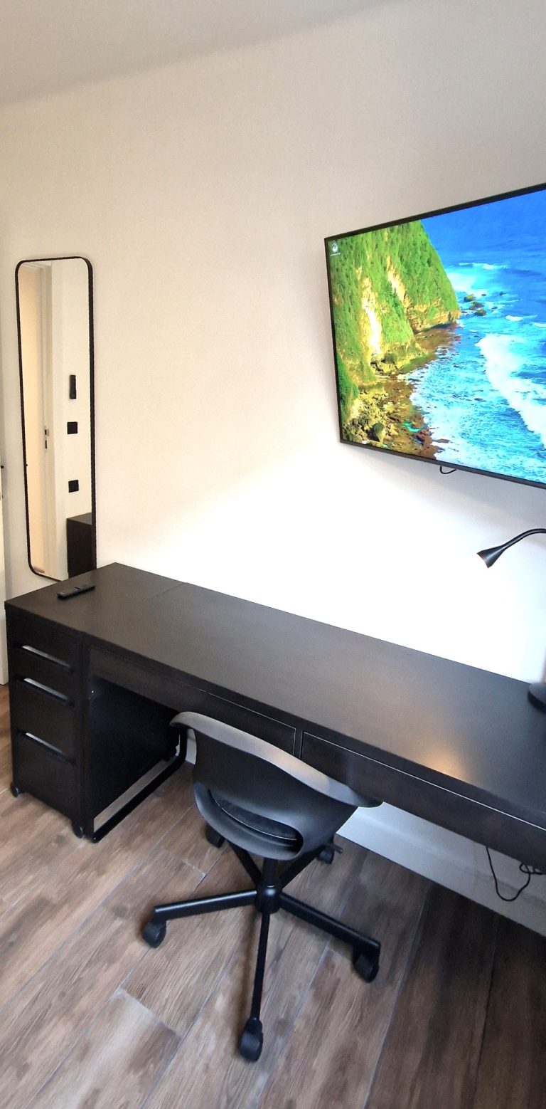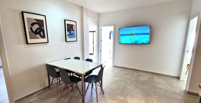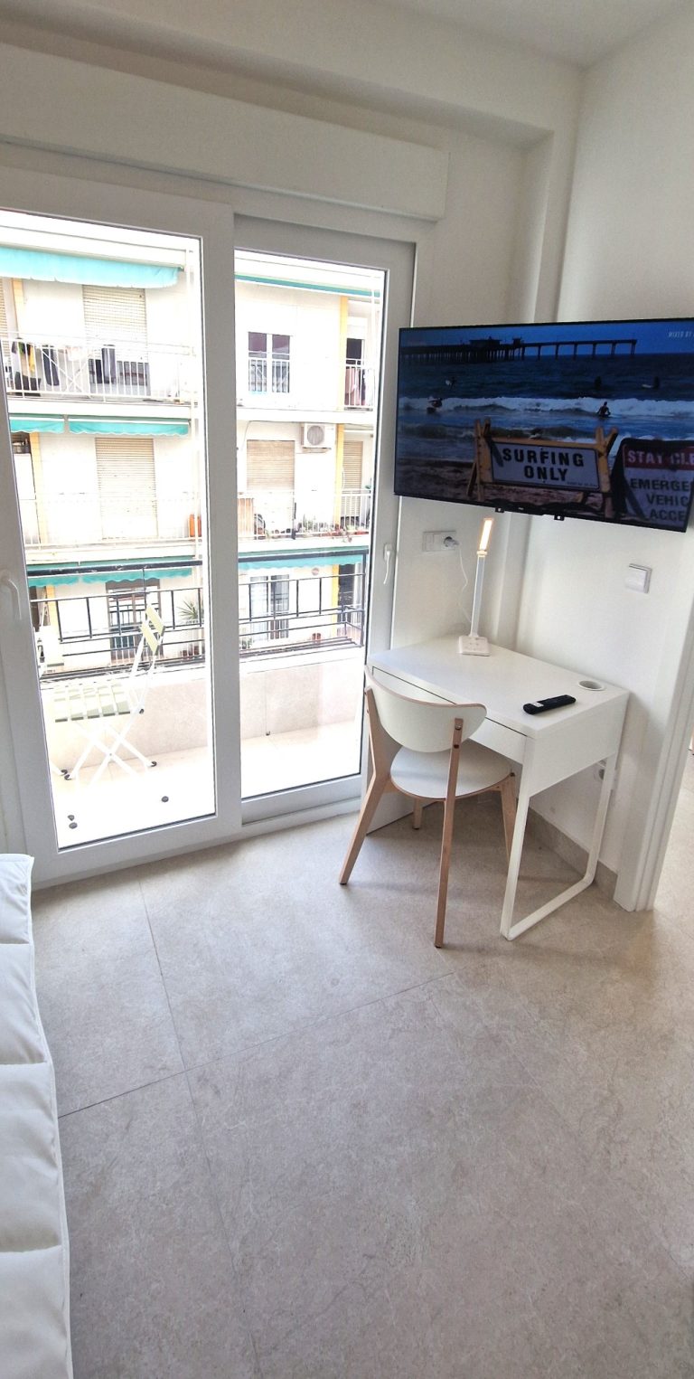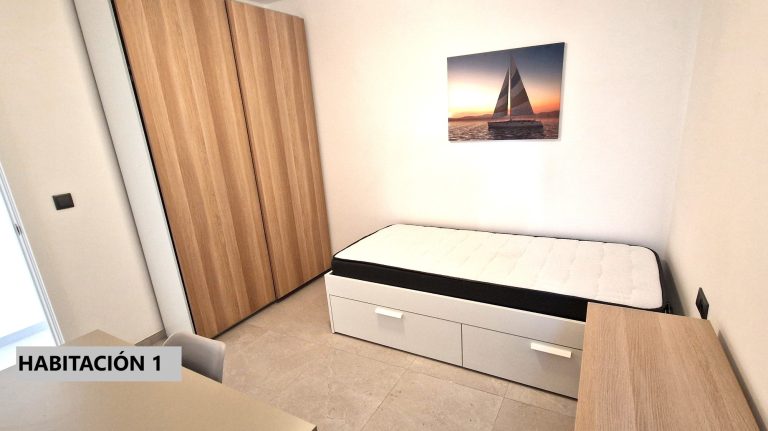 Piso que consta de 4 habitaciones completas, con cama de 160m, escritorio, armario y smart tv., un baño, cocina completamente equipada, salón y terraza exterior.