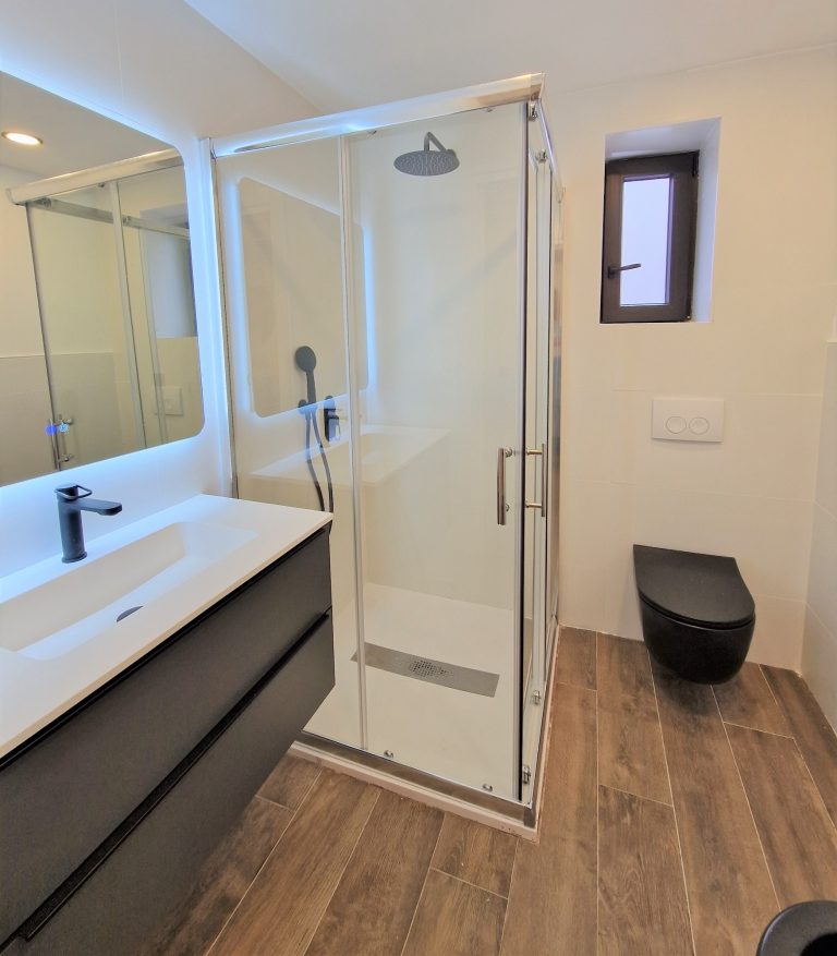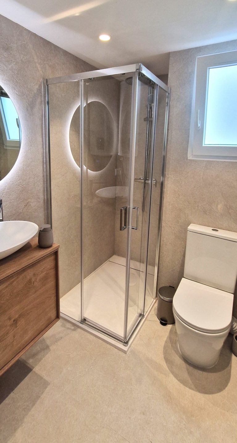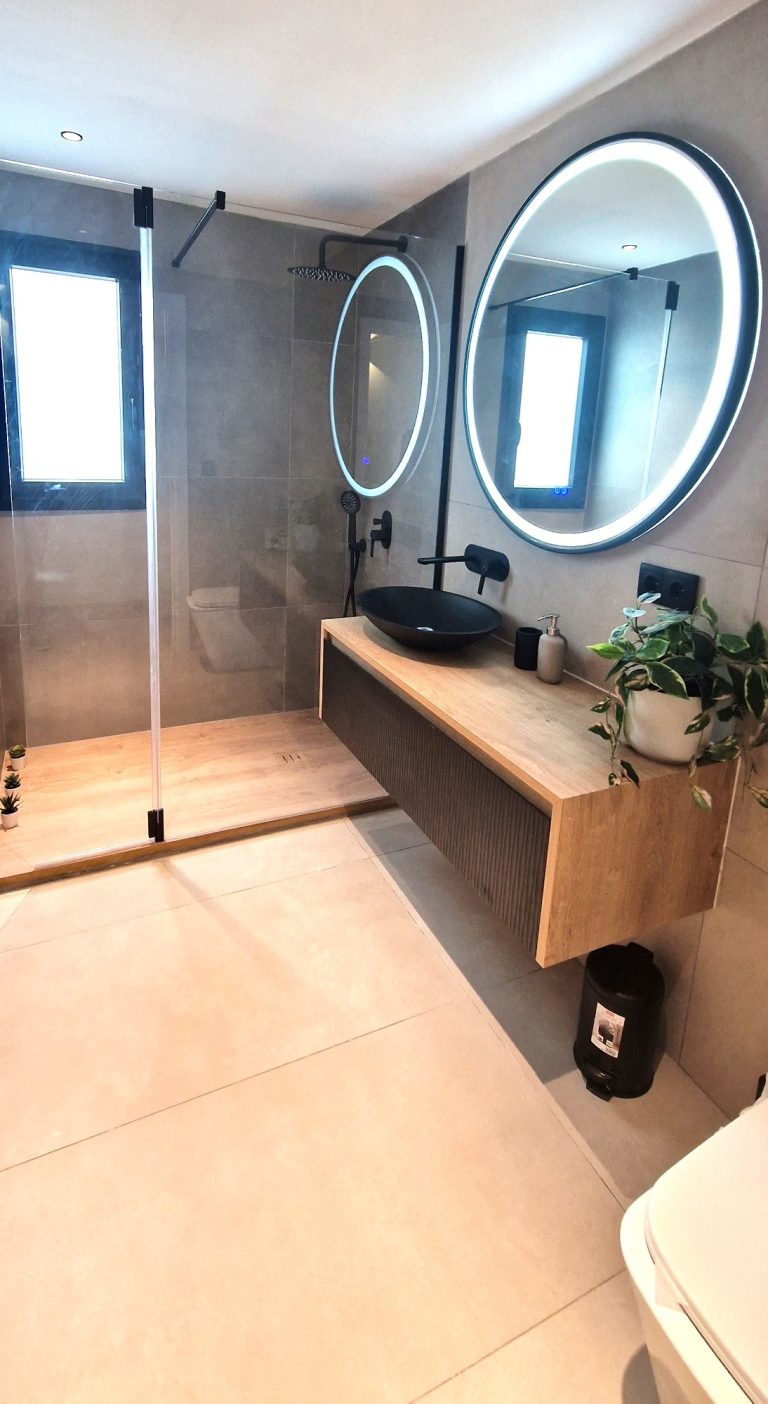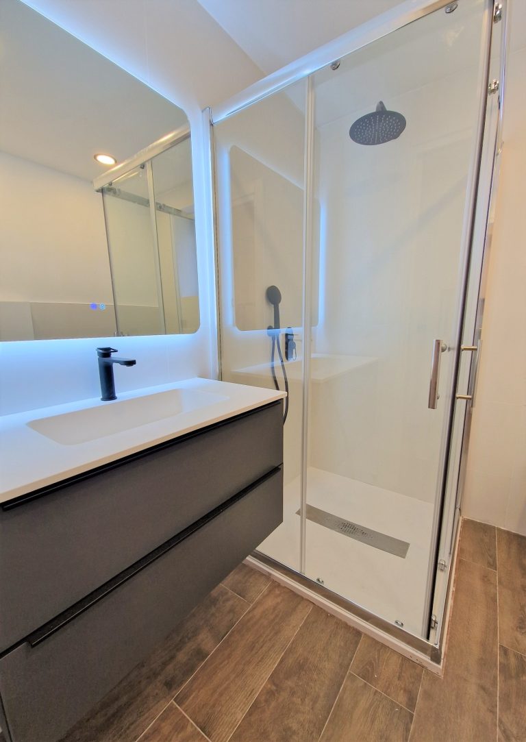 Dos cuartos de baño completos con ducha, espejo retroiluminado y quita vaho.