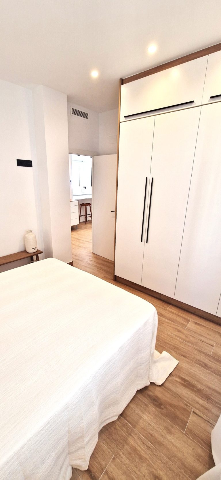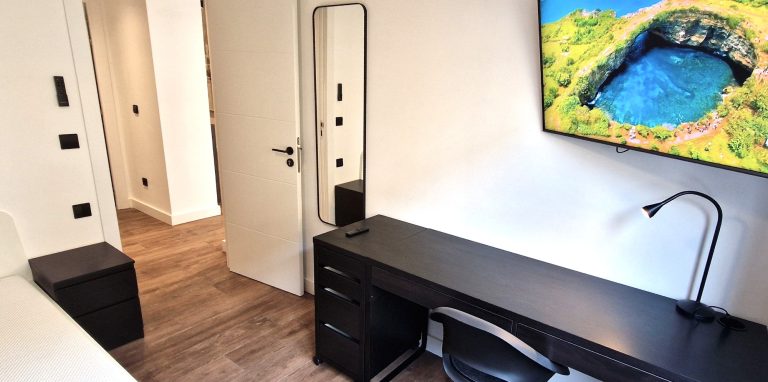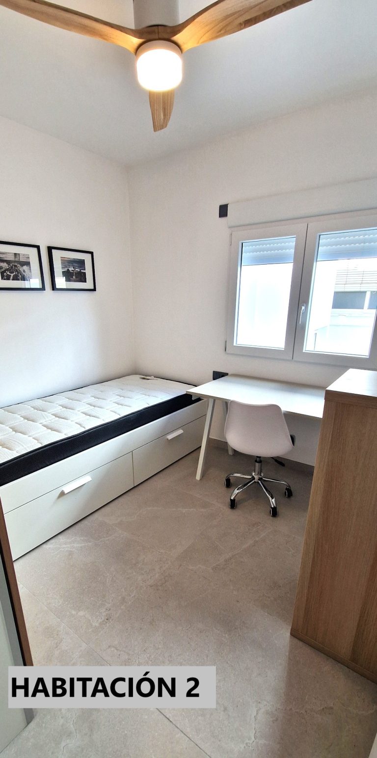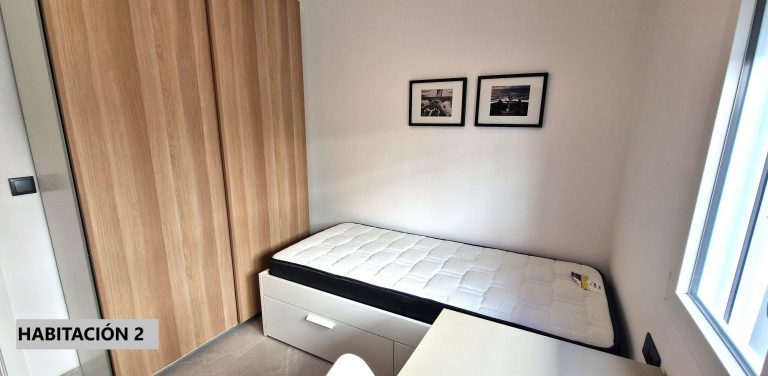 Consta de 2 habitaciones ambas exteriores, una de ellas equipada con cama de 160x200 y armario, la segunda habitación de momento sólo amueblada con armario, dependiendo del perfil interesado se podría poner un estudio o un segundo dormitorio.