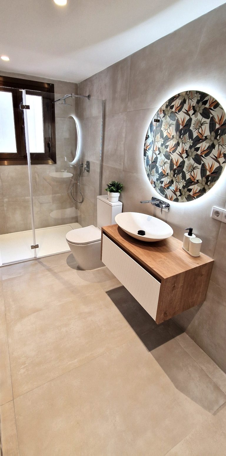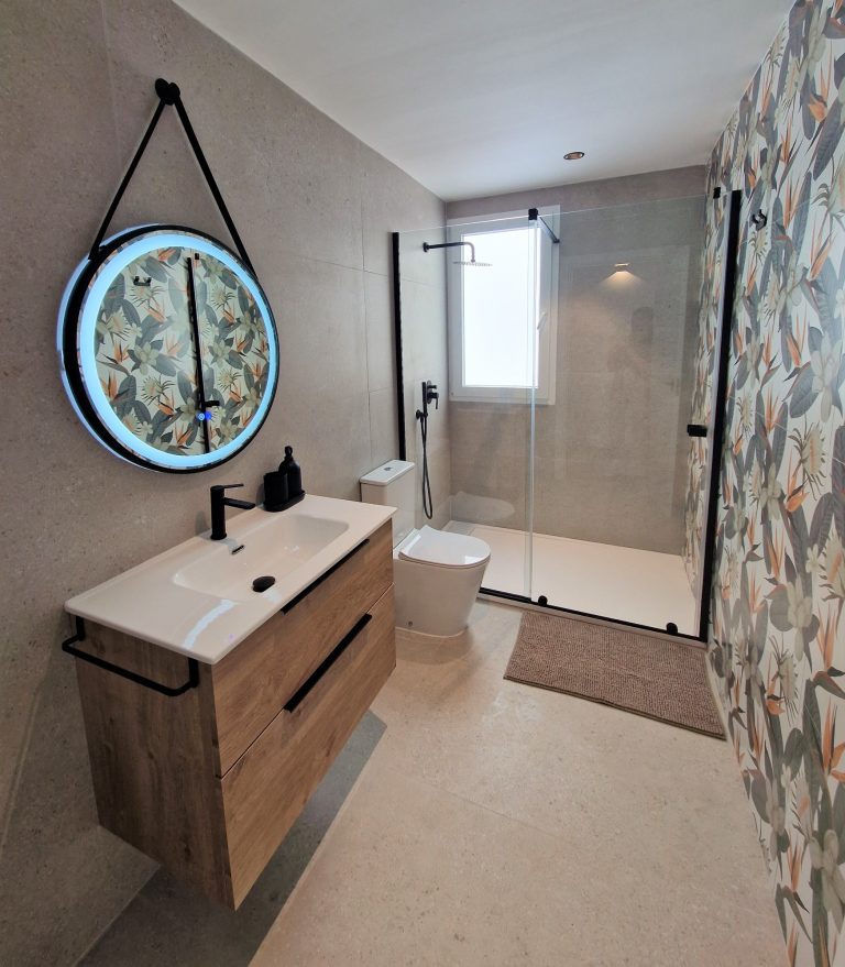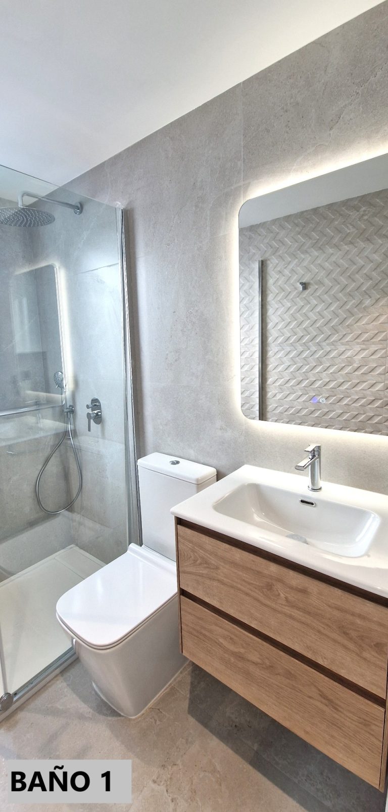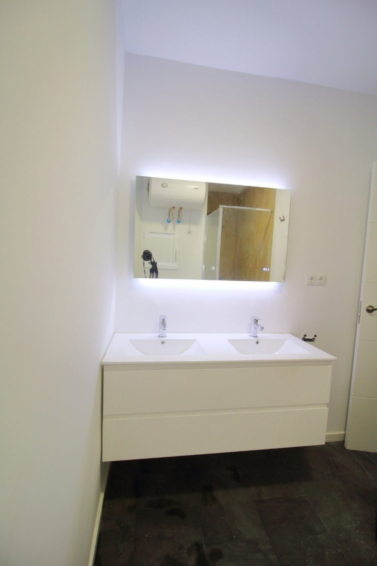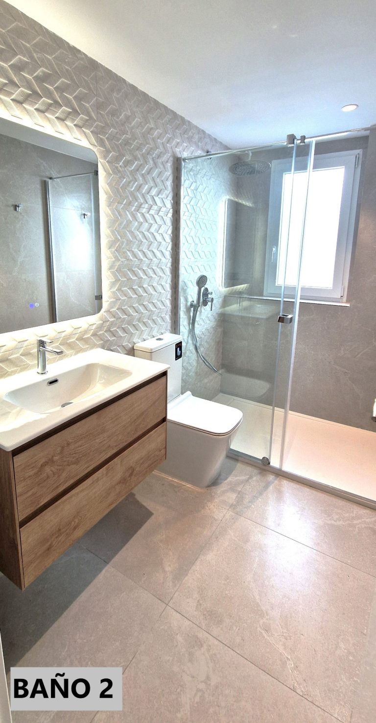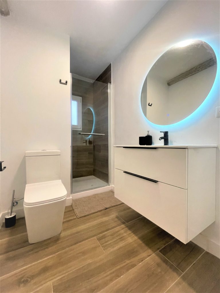 2 cuartos de baño con ducha, espejo retroiluminado.