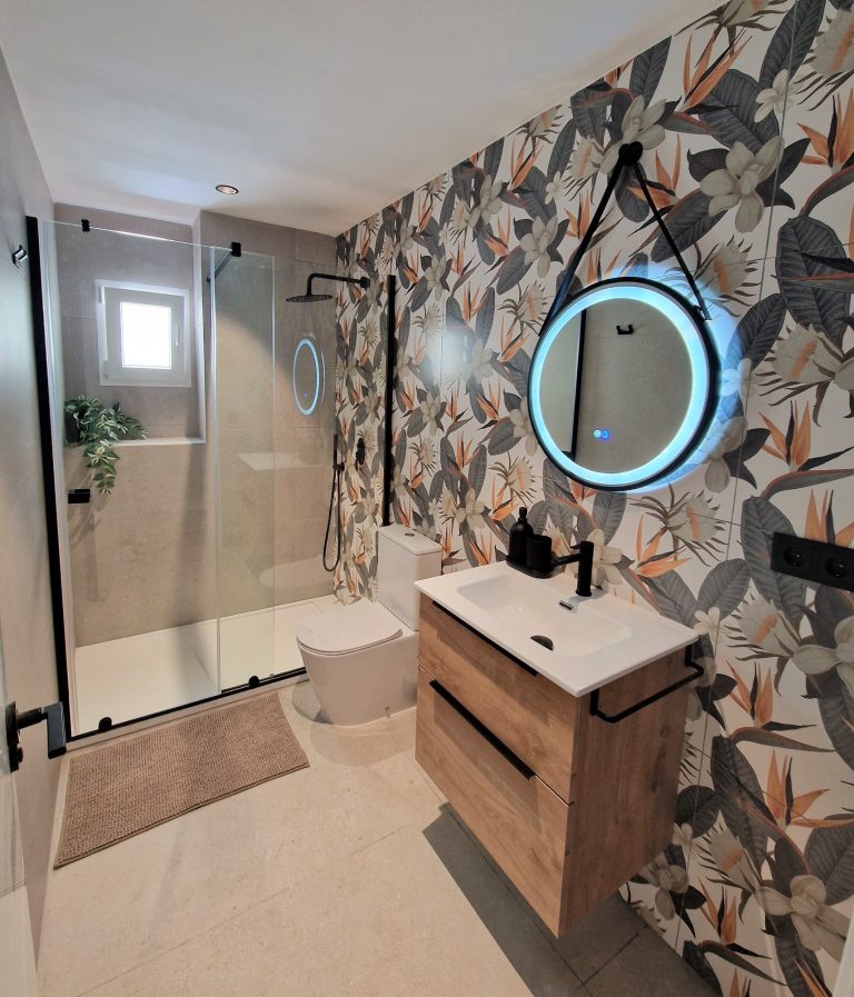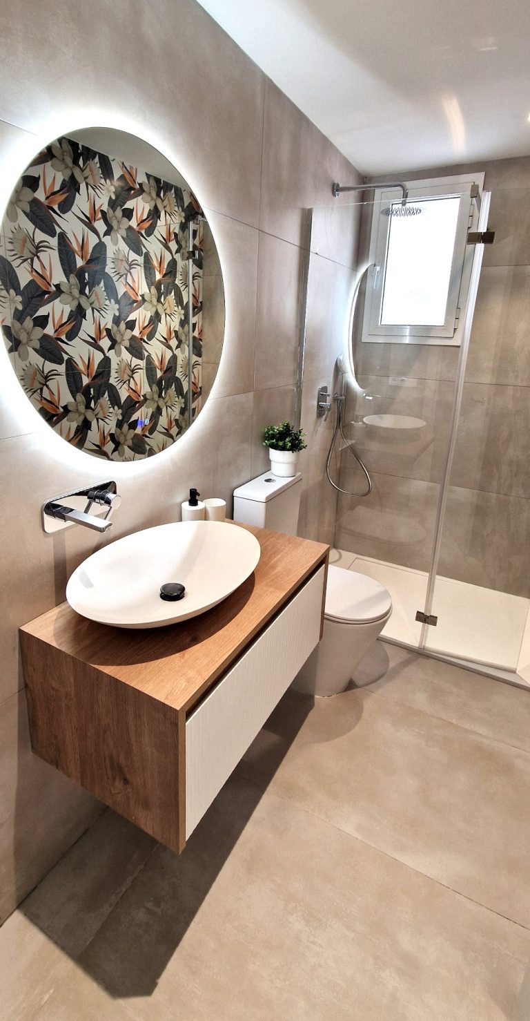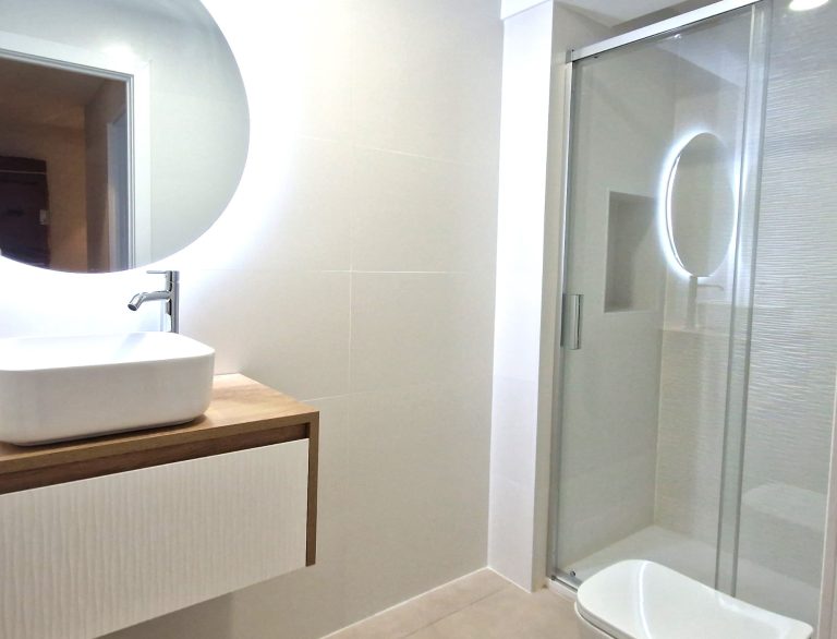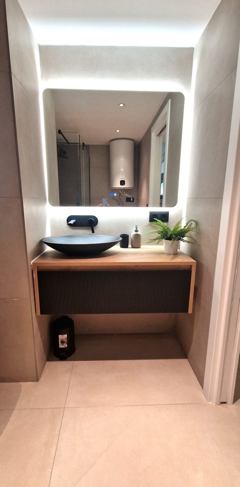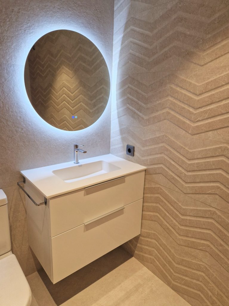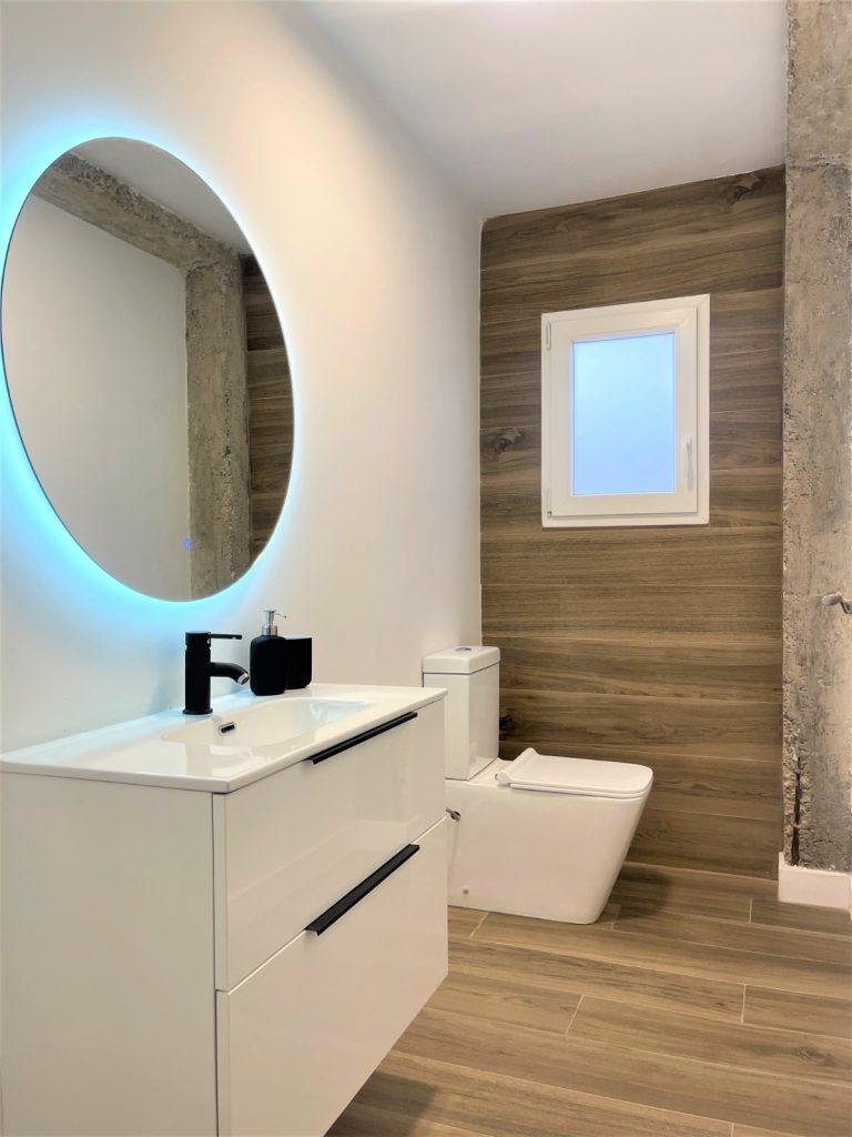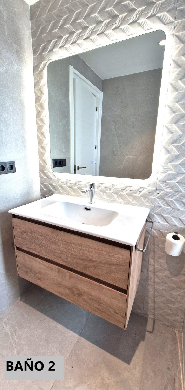 2 cuartos de baño con ducha, espejo retroiluminado.