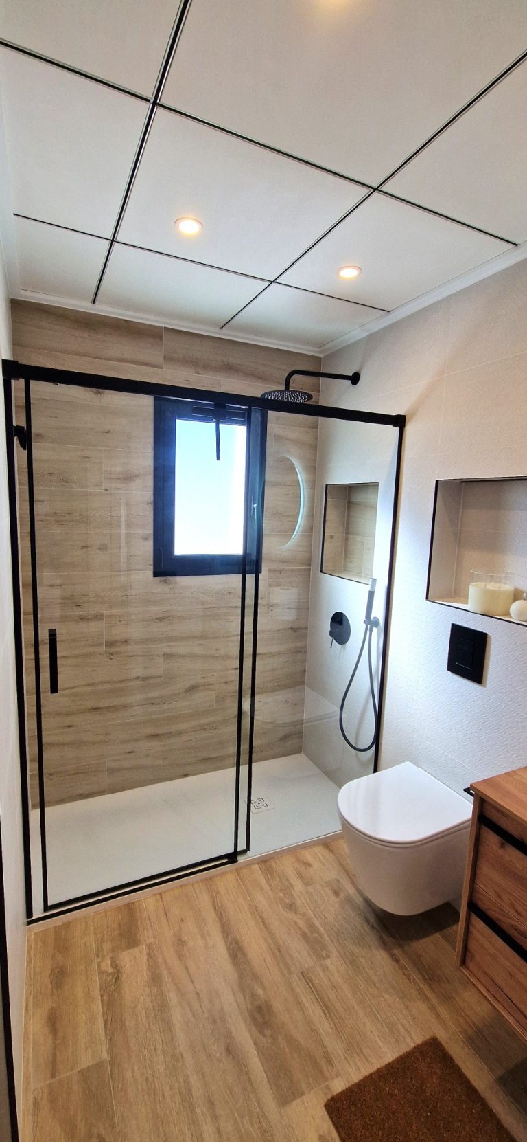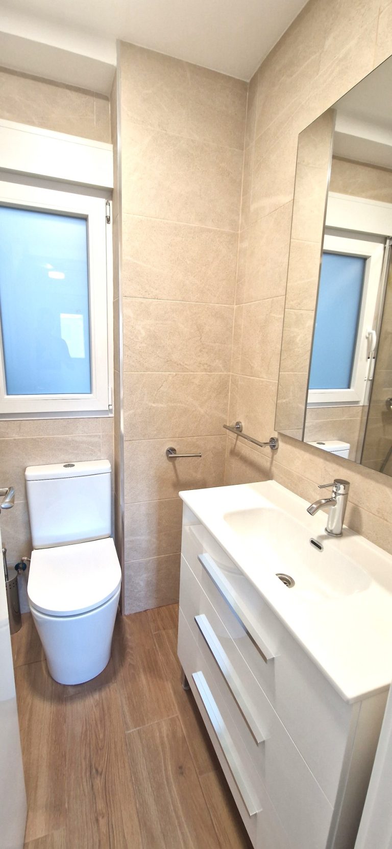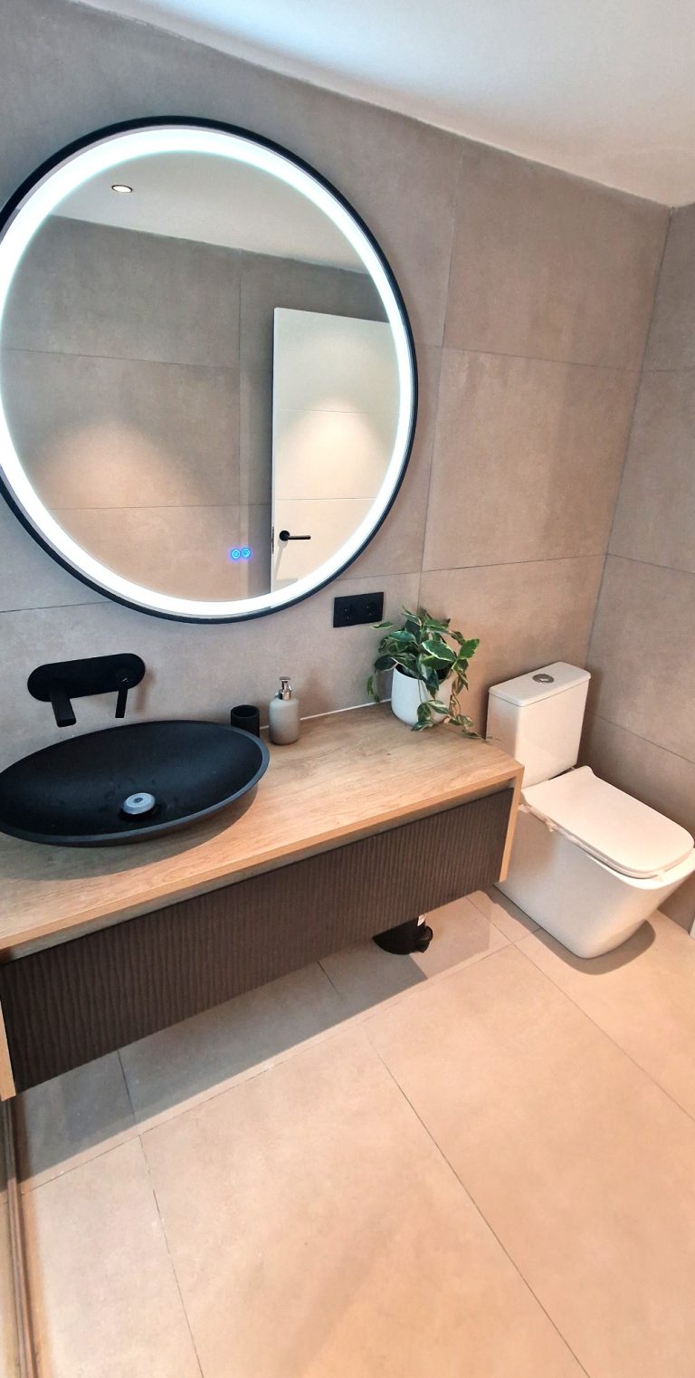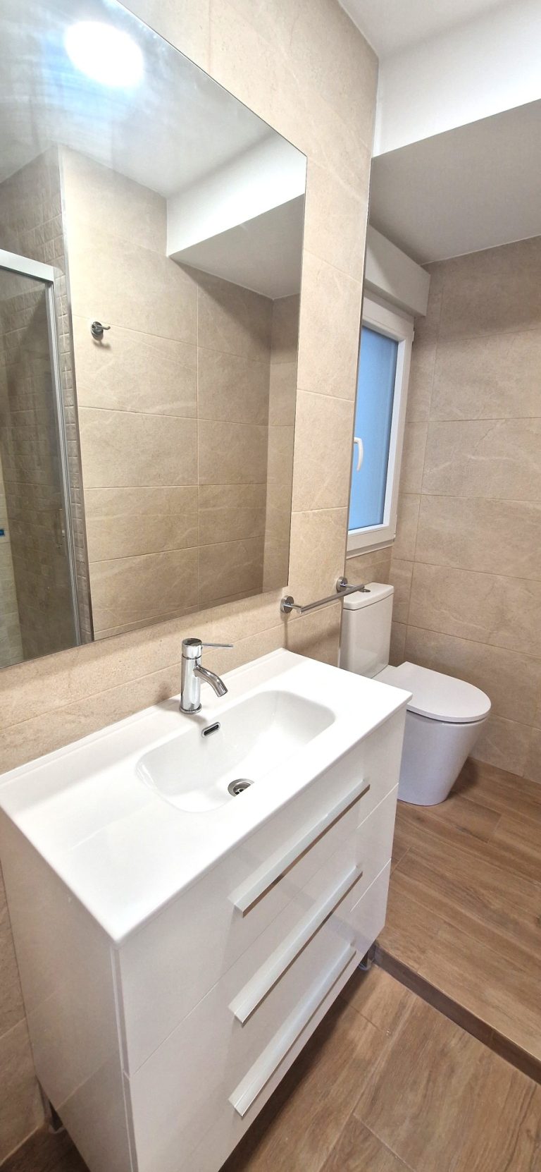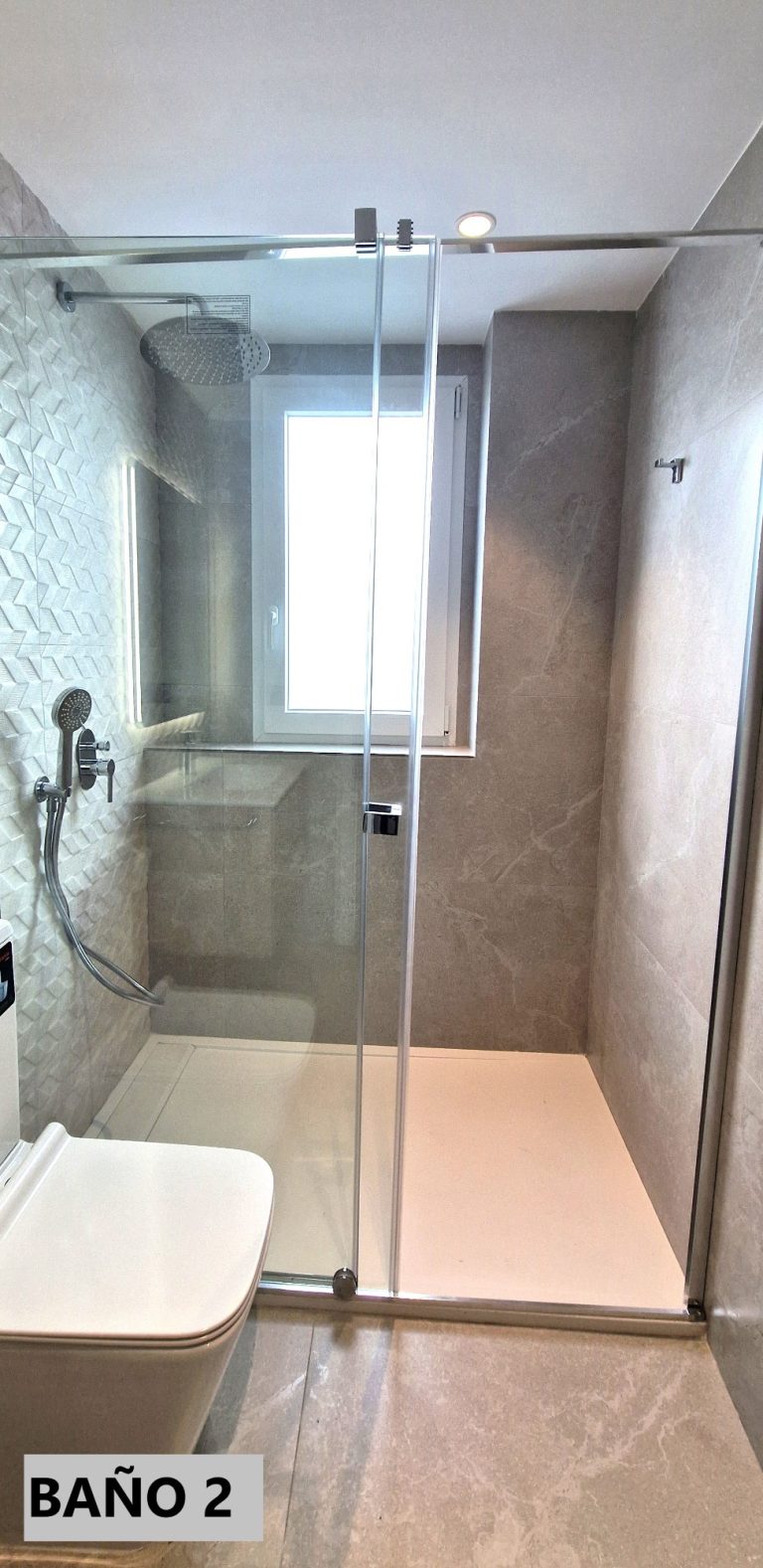 2 cuartos de baño con ducha, espejo retroiluminado.