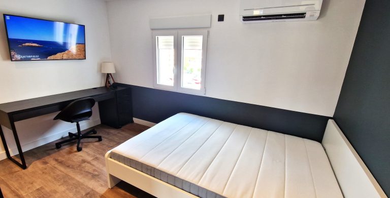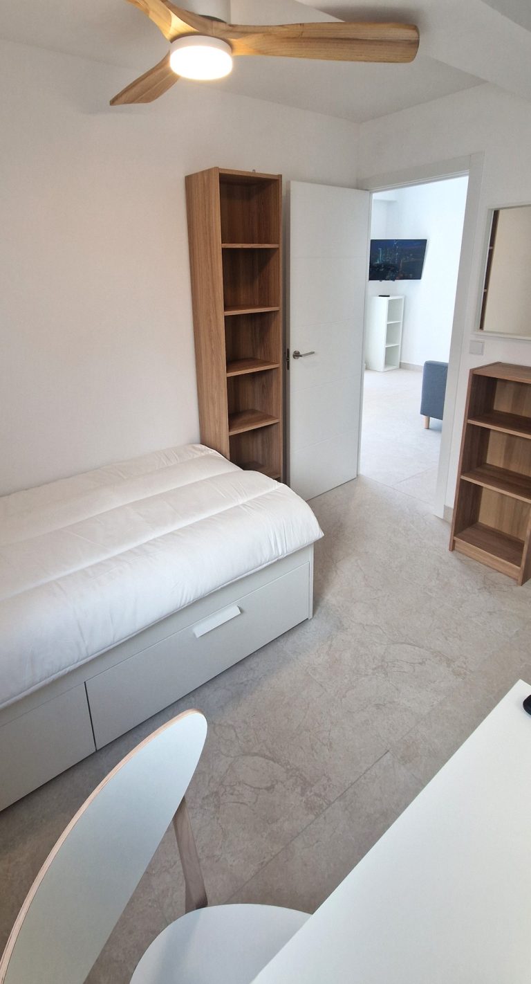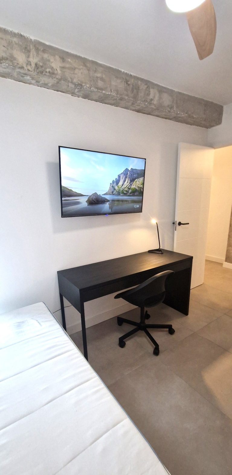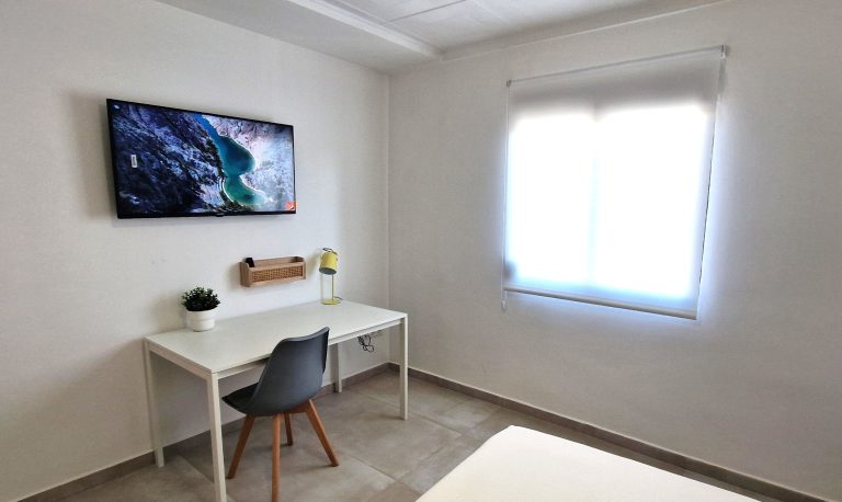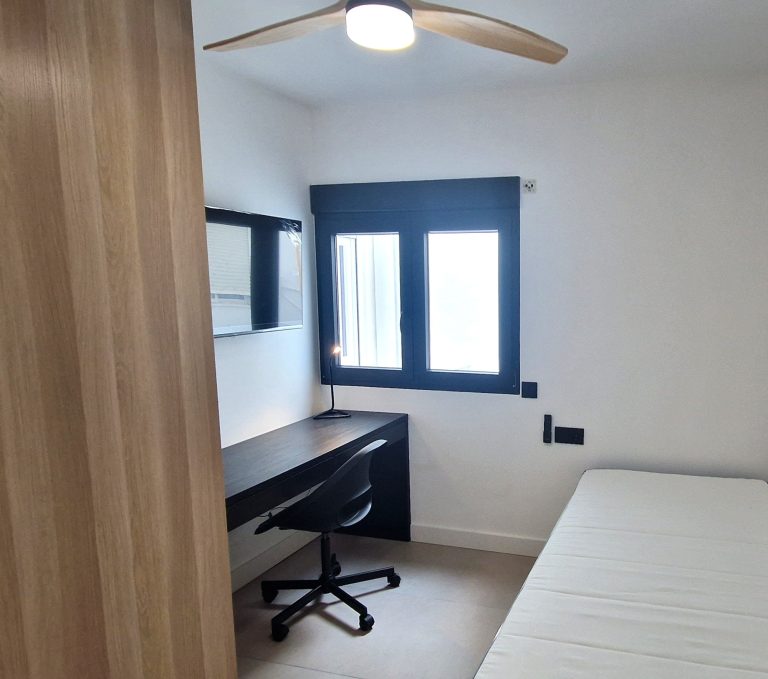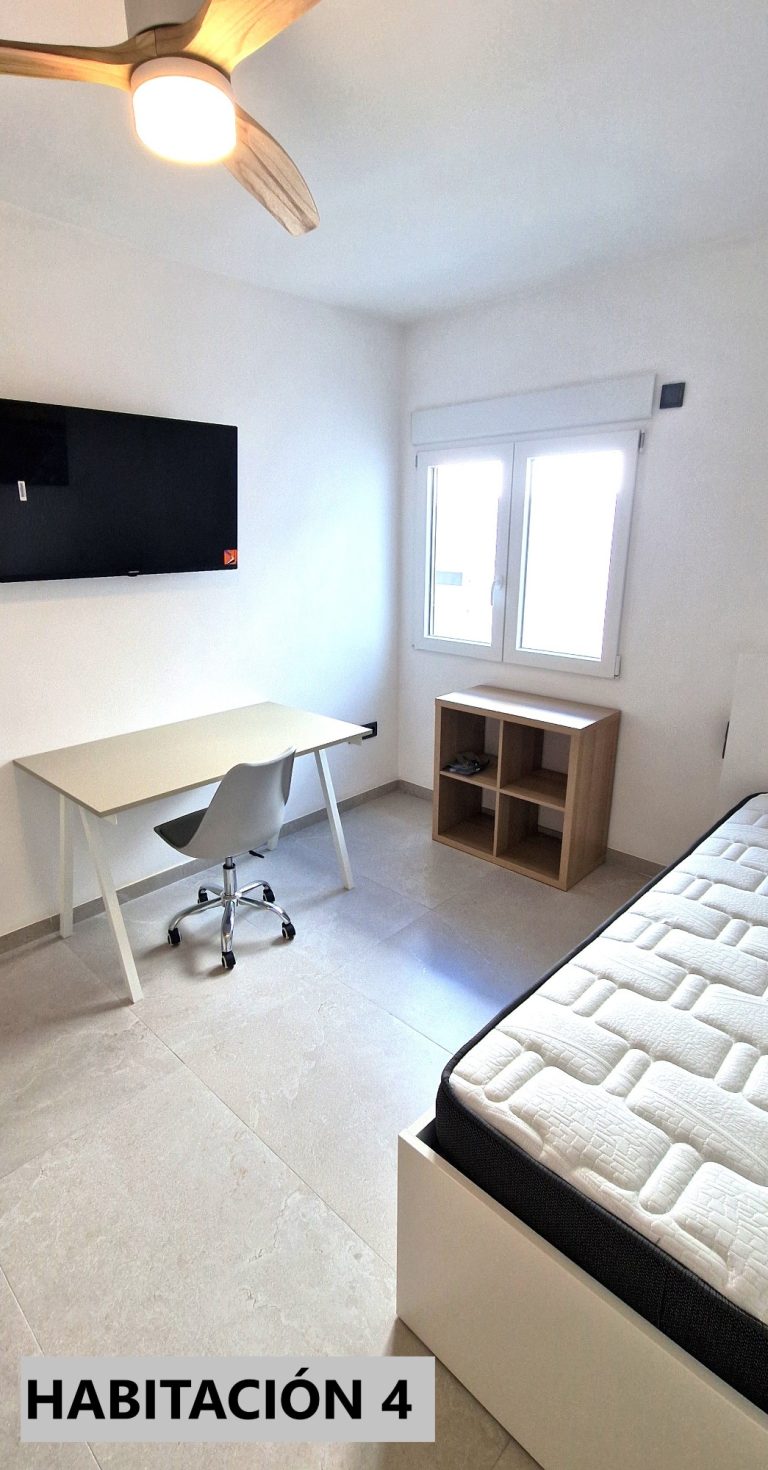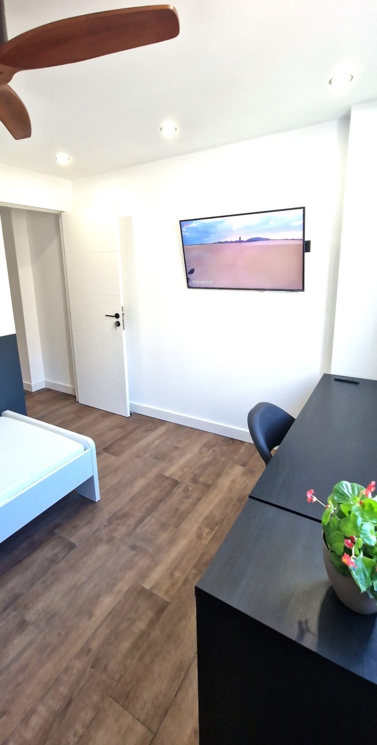 Consta de 5 habitaciones, todas ellas equipadas con cama de 90x200, armario, escritorio, ventilador o aire acondicionado y Smart tv de 43":