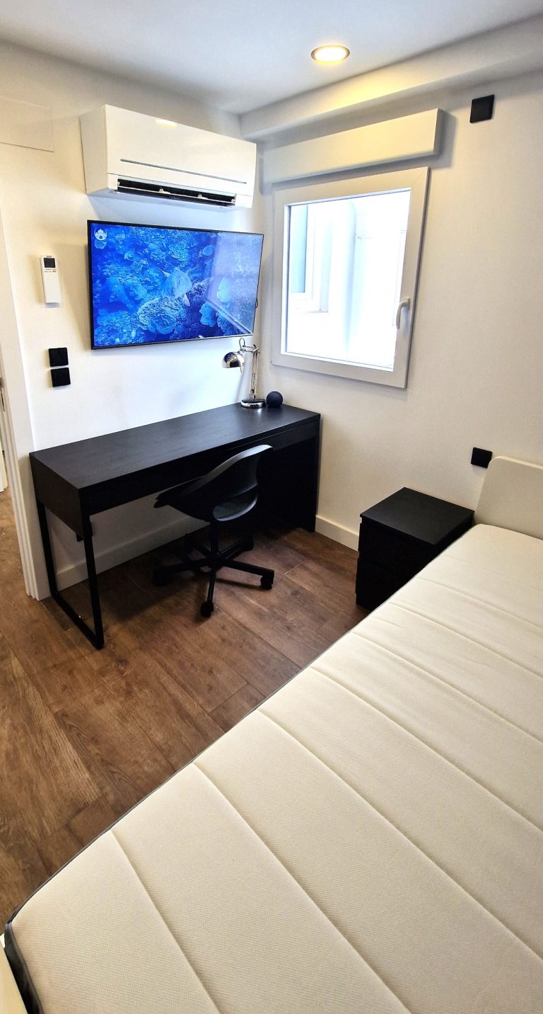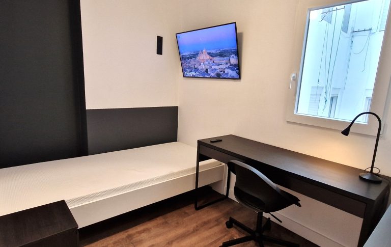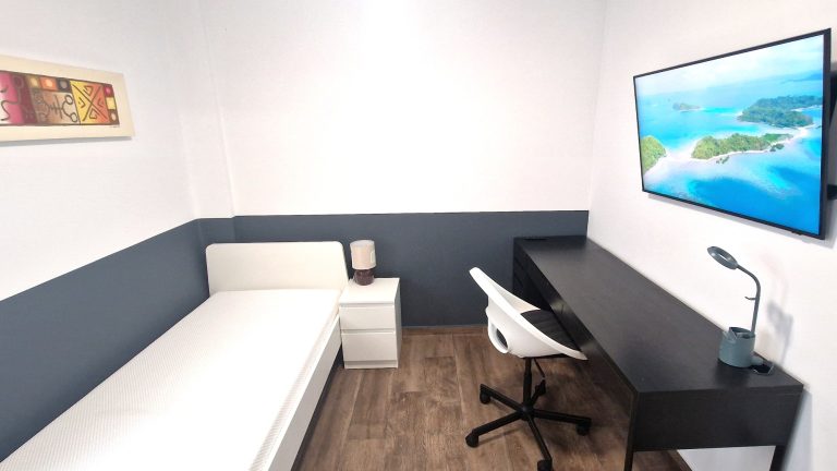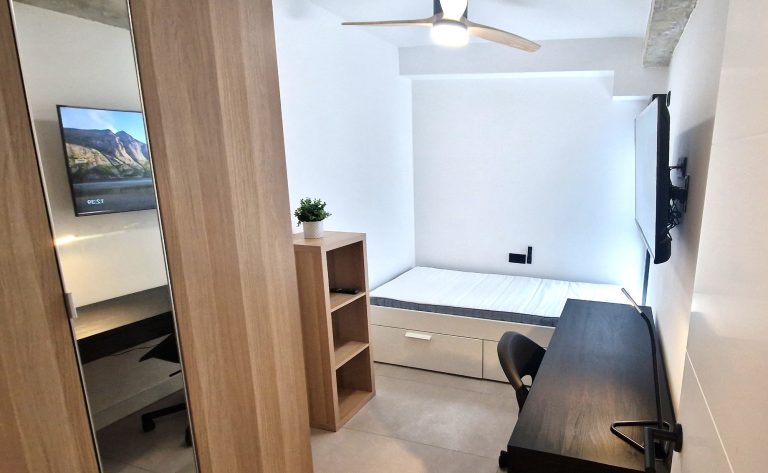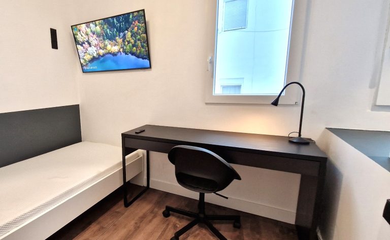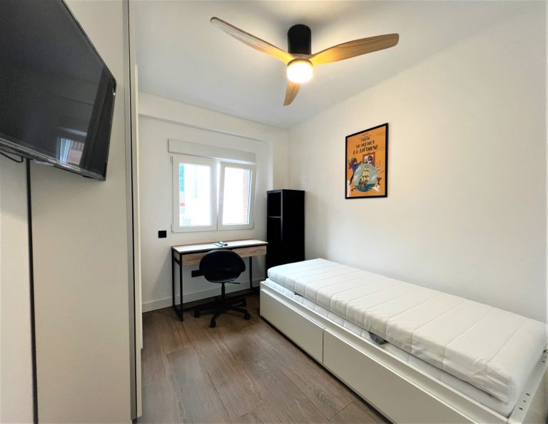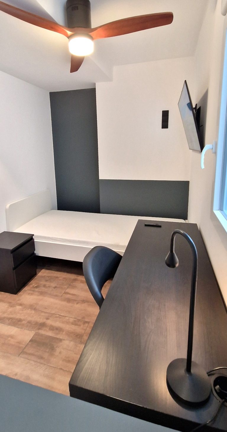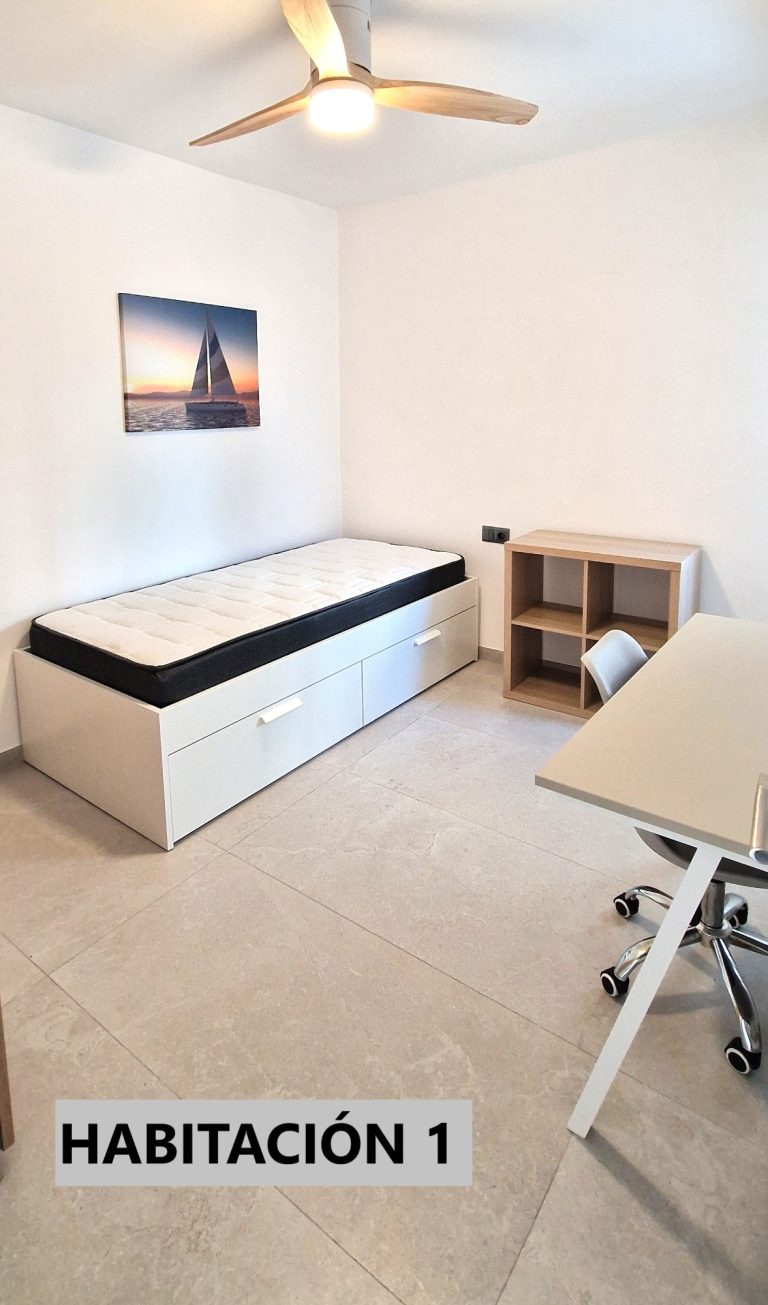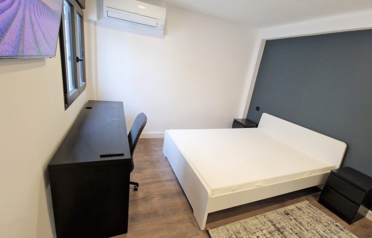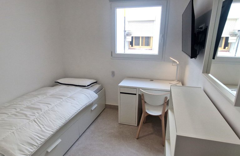 Consta de 5 habitaciones, todas ellas equipadas con cama de 90x200, armario, escritorio, ventilador o aire acondicionado y Smart tv de 43":