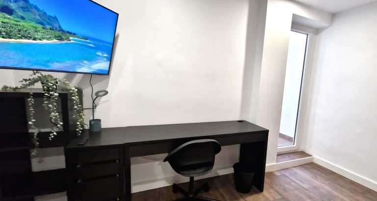 Consta de 3 habitaciones, todas ellas equipadas con cama, armario, escritorio, ventilador de techo y smart tv de 40".