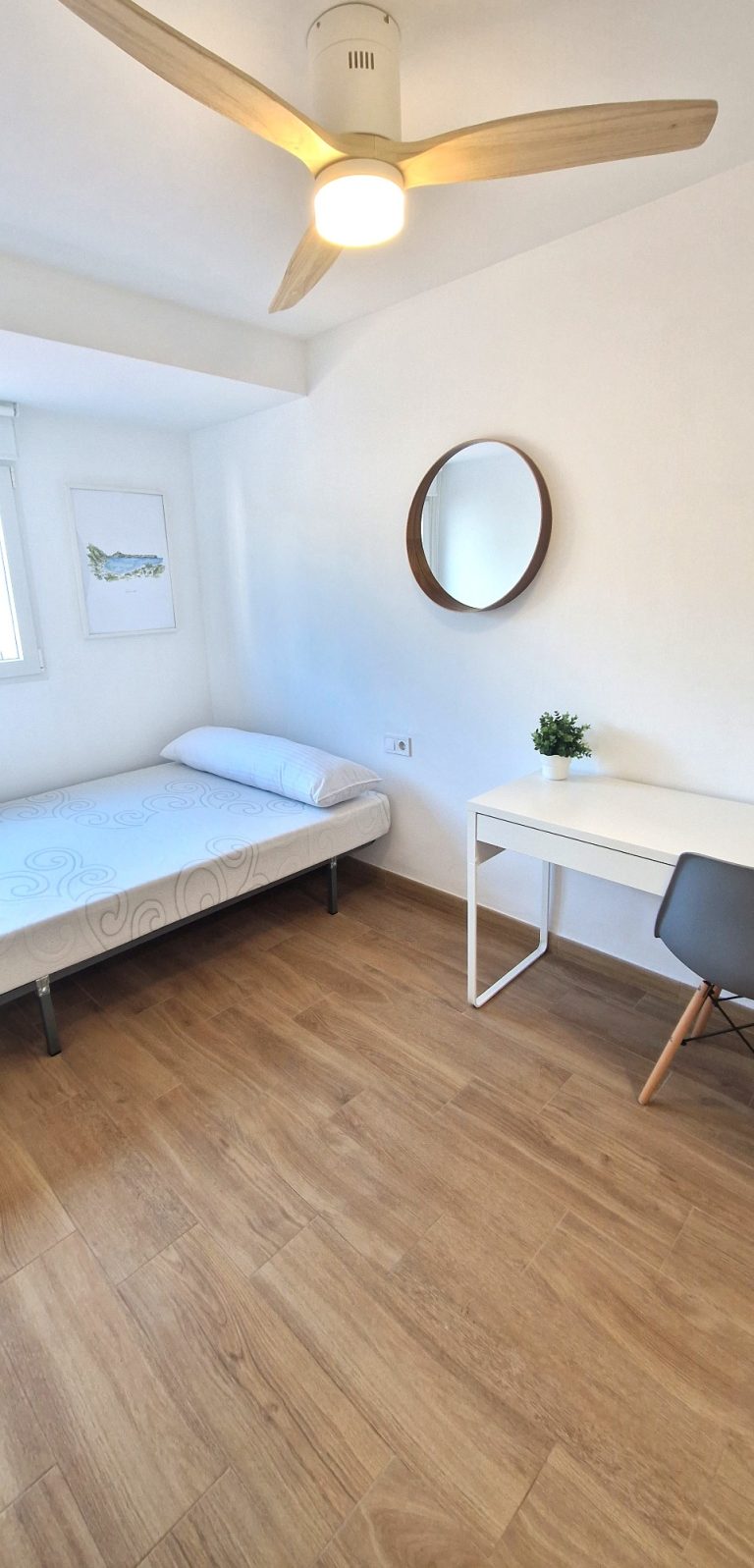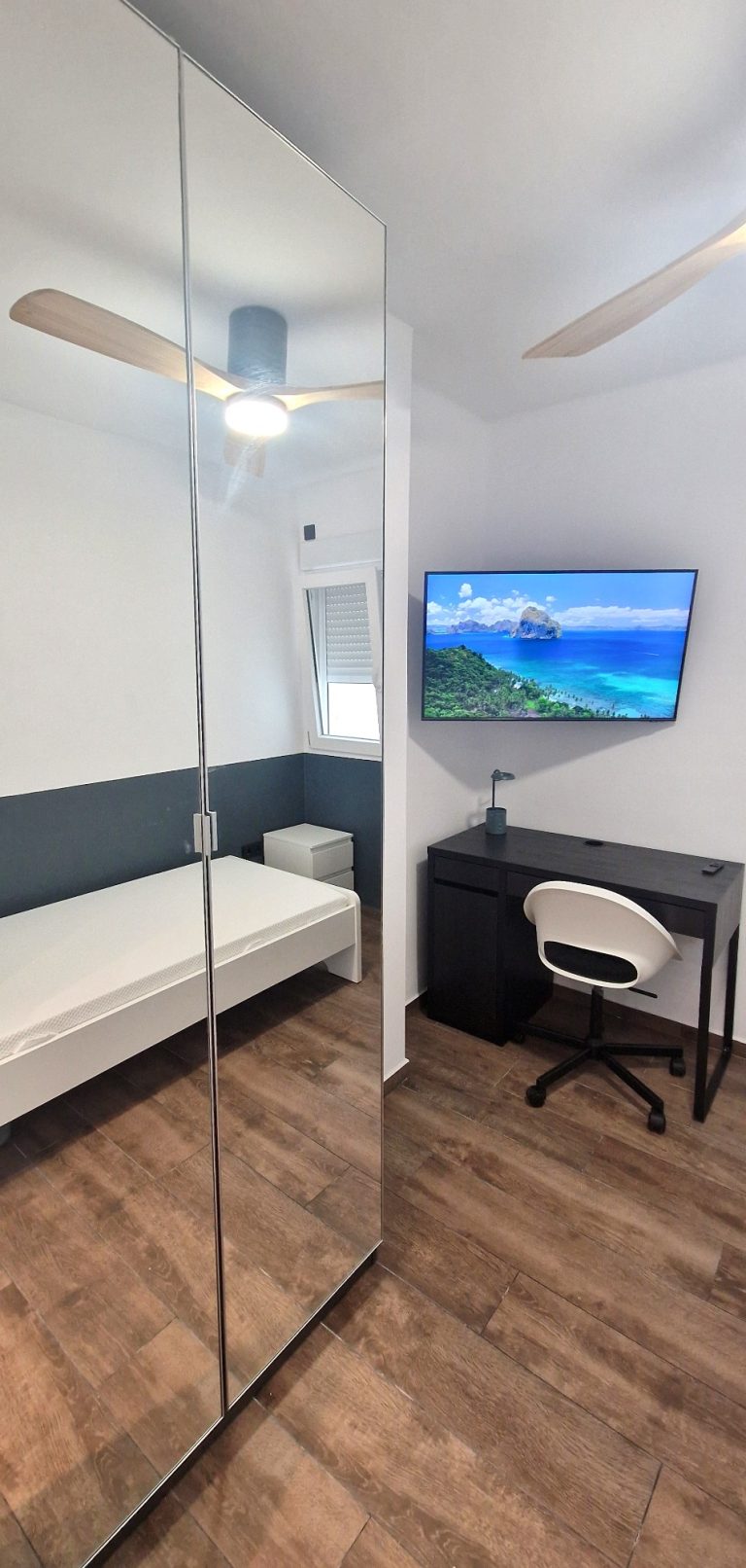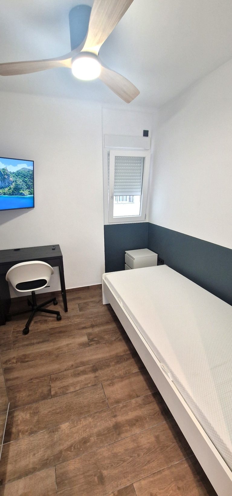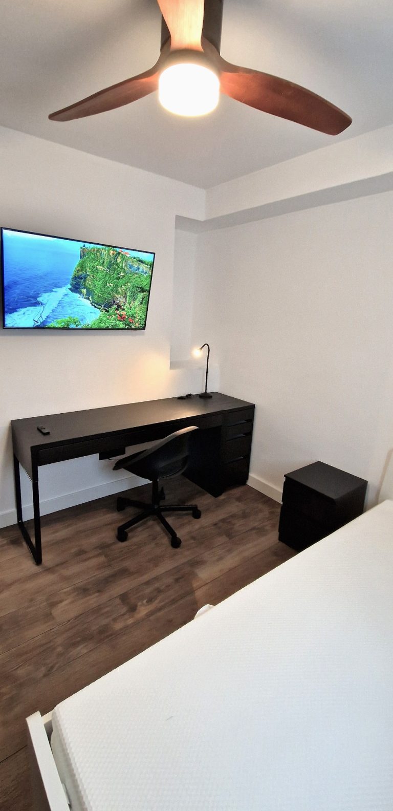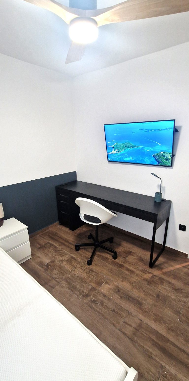 Consta de 3 habitaciones, todas ellas equipadas con cama, armario, escritorio, ventilador de techo y smart tv de 42".