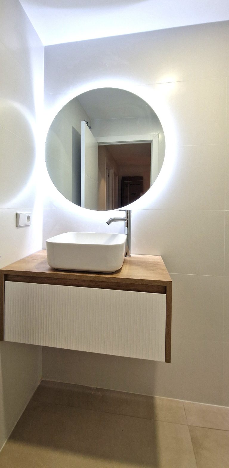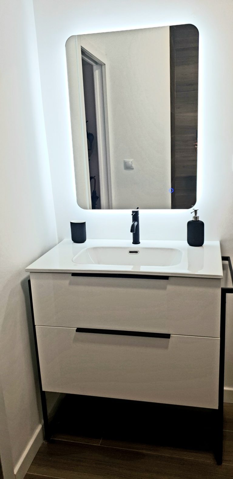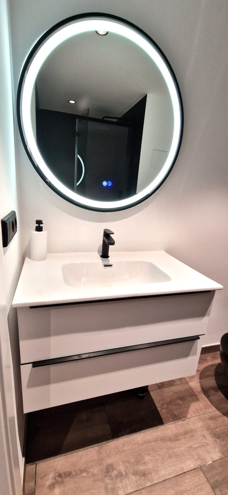 1 cuarto de baño con ducha, espejo retroiluminado.