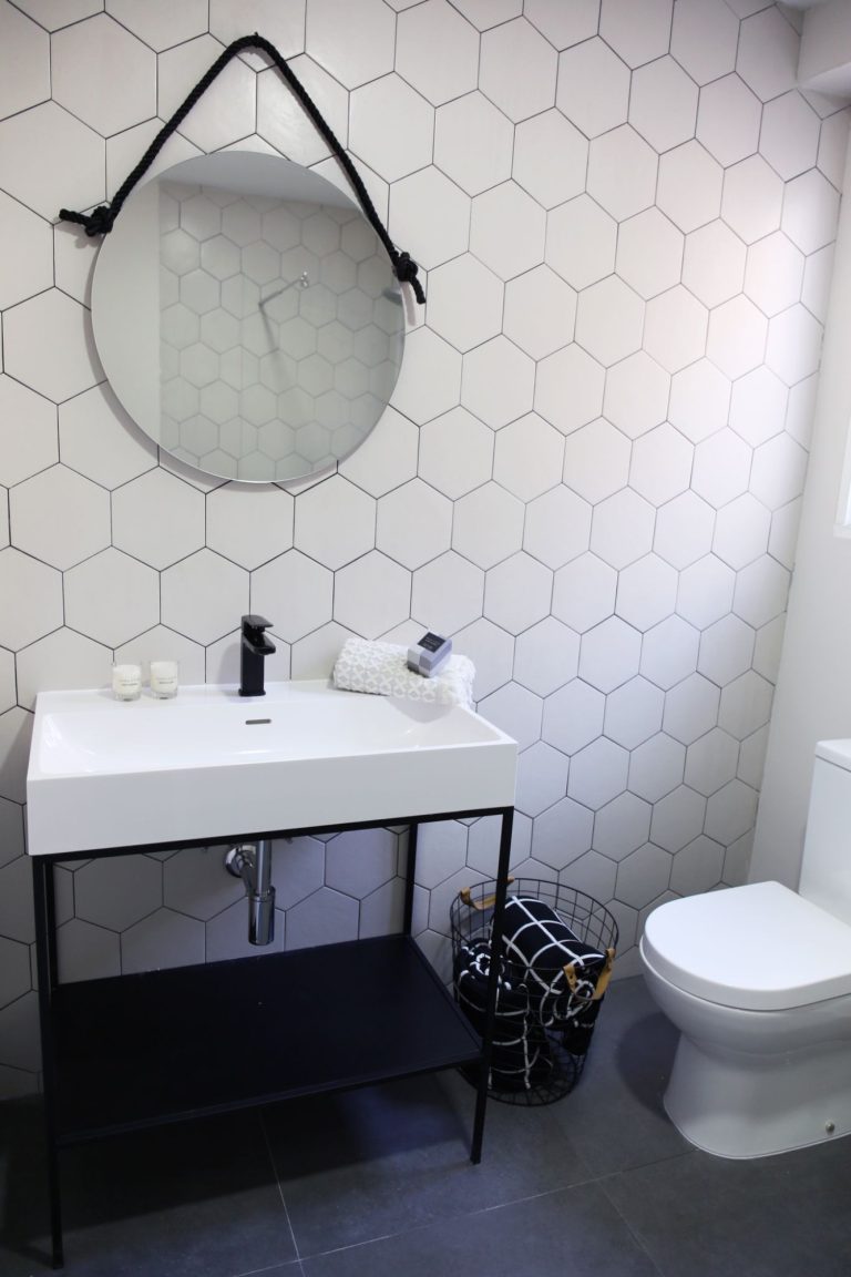 En uno de los baños está instalada la lavadora y el termo eléctrico.