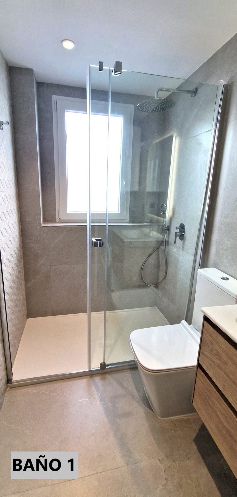 1 cuartos de baño con ducha, bidé, espejo retroiluminado y quita vaho.