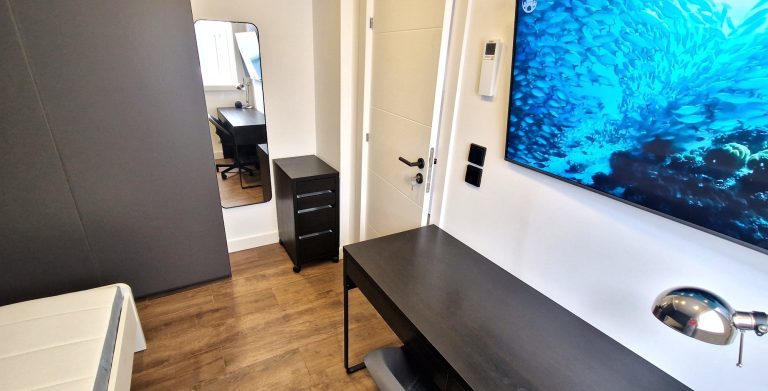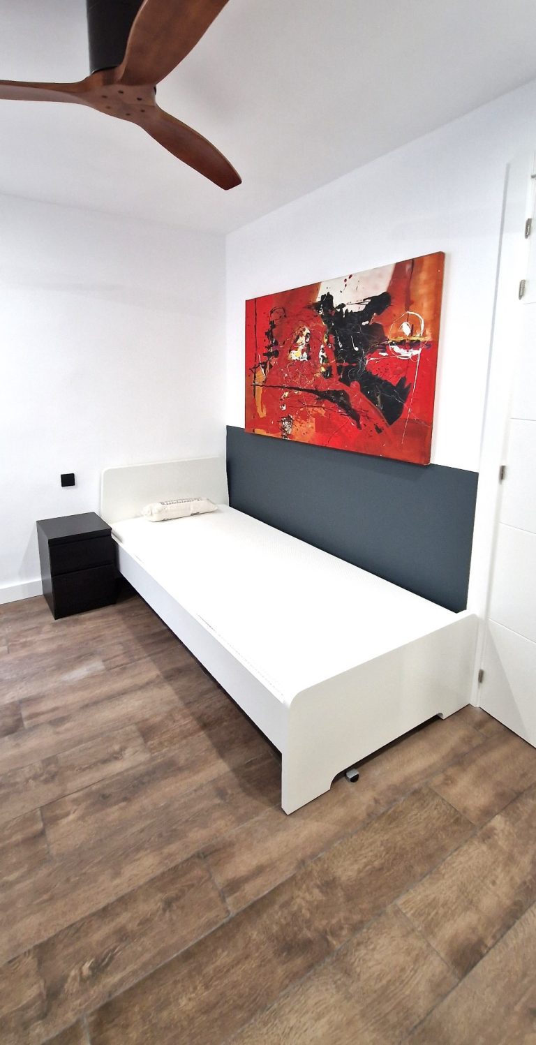 Consta de 3 habitaciones, dos de ellas equipadas con cama de 90x200 y la tercera con cama de 140x200, smartv de 43", ventilador de techo, armario, escritorio y persianas eléctricas, una de las habitaciones tiene una pequeña terraza exterior amueblada.