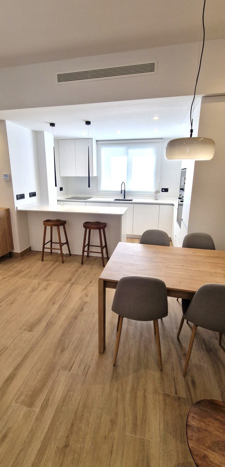 El piso está equipado con todo tipo de electrodomésticos, aire acondicionado, lavadora, horno, campana extractora, vitrocerámica... y también conexión a internet.