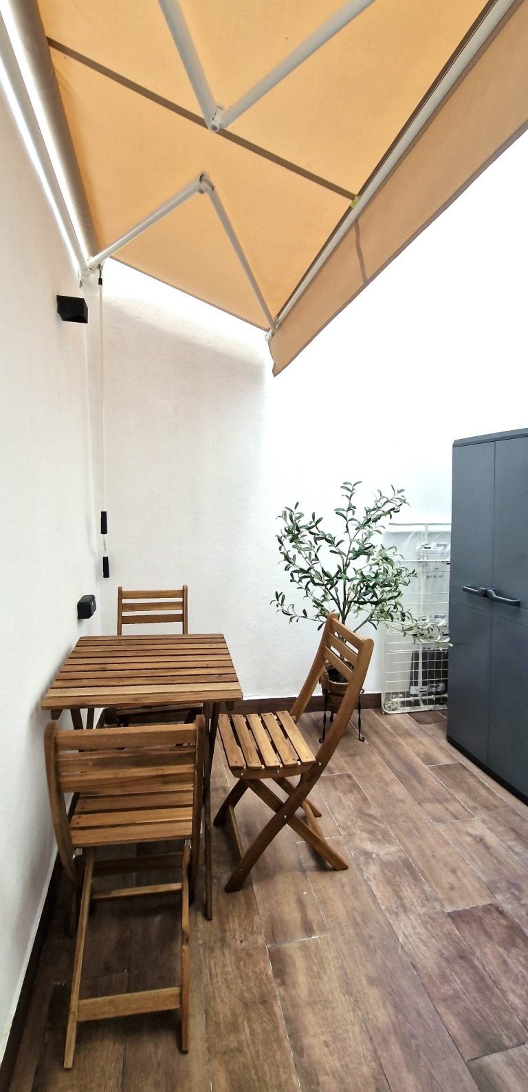 Hay otro espacio exterior que sirve de trastero. Esta zona es perfecta para almacenar maletas, aparatos eléctricos o incluso bicicletas.