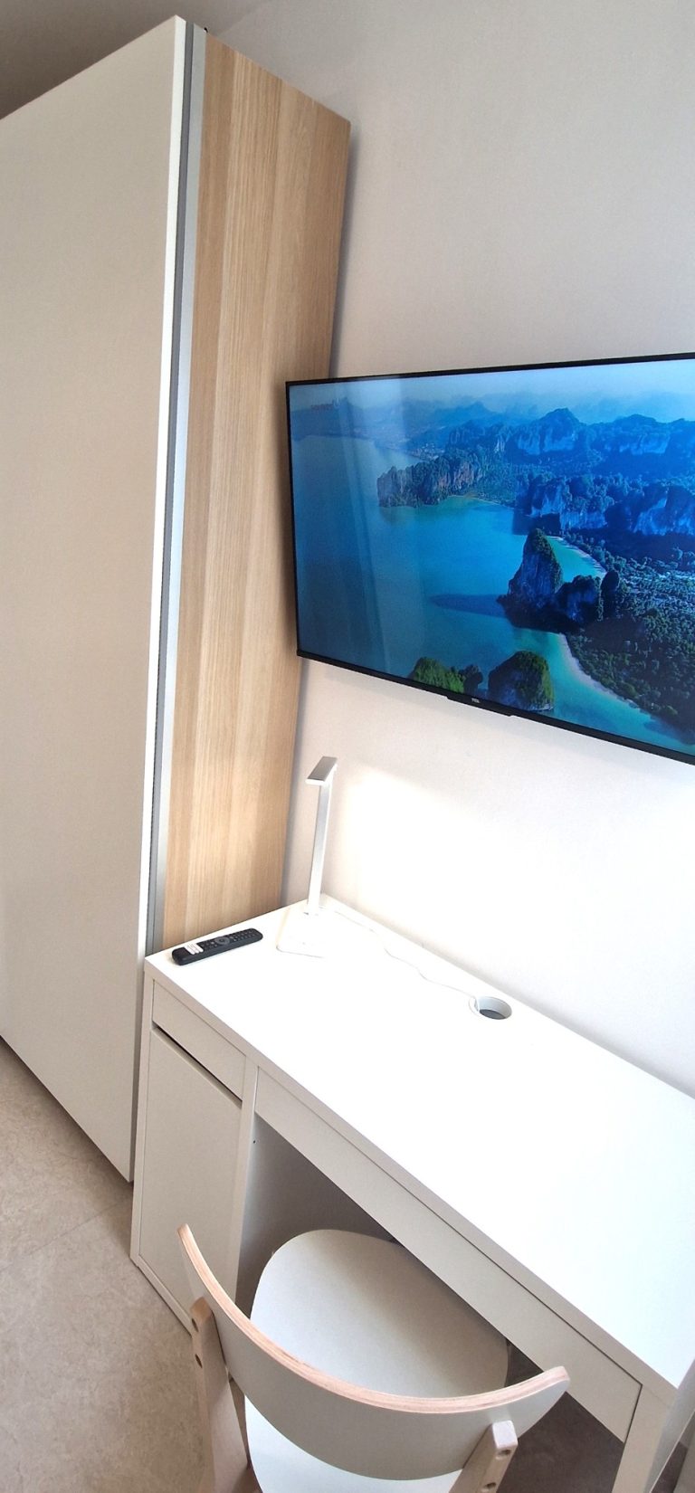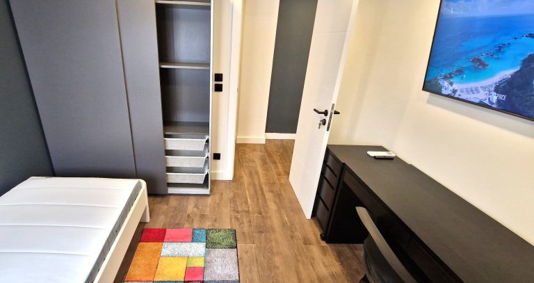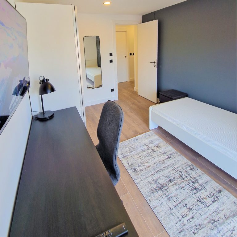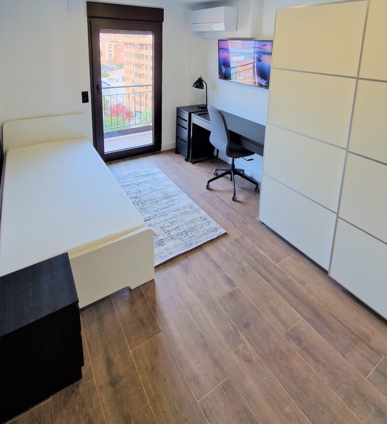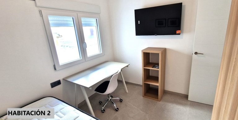 Consta de 4 habitaciones, todas ellas equipadas con cama, armario, escritorio, aparato de AACC y smart tv de 40".
