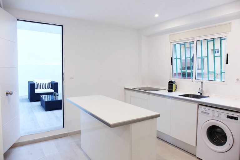 También tiene una terraza exterior, en la que hay un apartado donde se encuentra la lavadora.