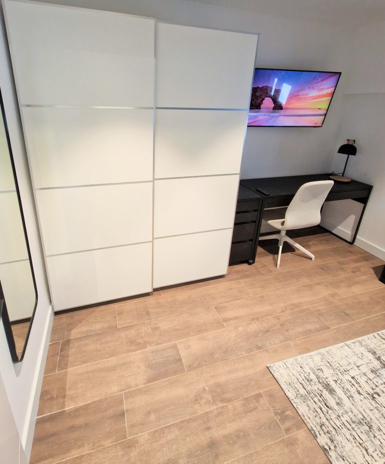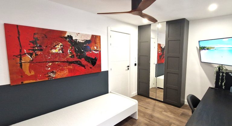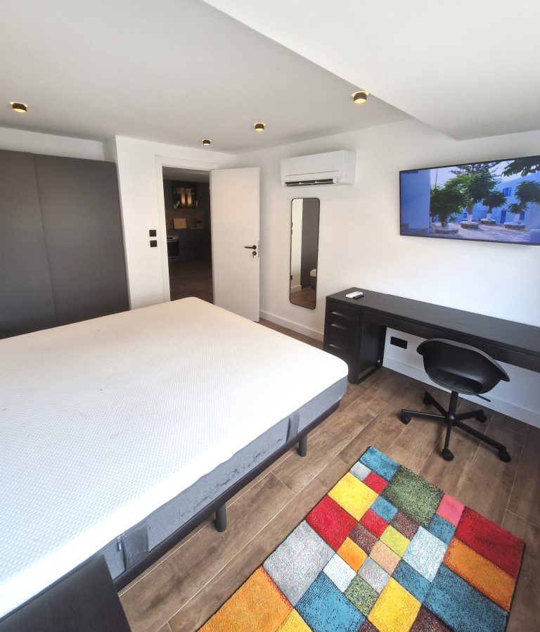 Consta de 4 habitaciones, una de ellas Suite con cuarto de baño con bañera y espejo retroiluminado, todas las habitaciones incluyen cama, armario, escritorio, ventilador de techo y smart tv de 40".